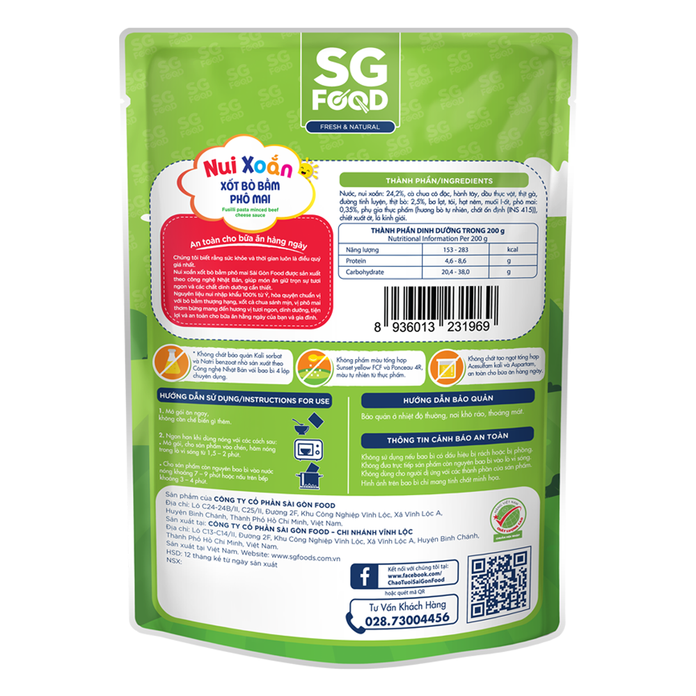 Nui xoắn xốt bò bằm phô mai SG Food 200g