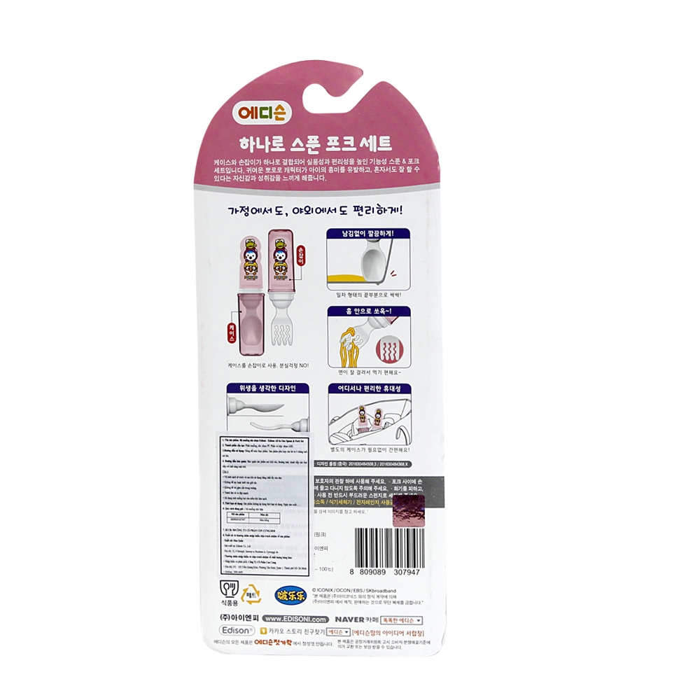 Bộ muỗng nĩa đa năng Edison Pororo (màu hồng)