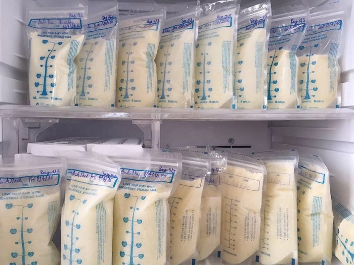 - Dùng túi bảo quản sữa chuyên dụng để chứa lượng sữa vắt ra.