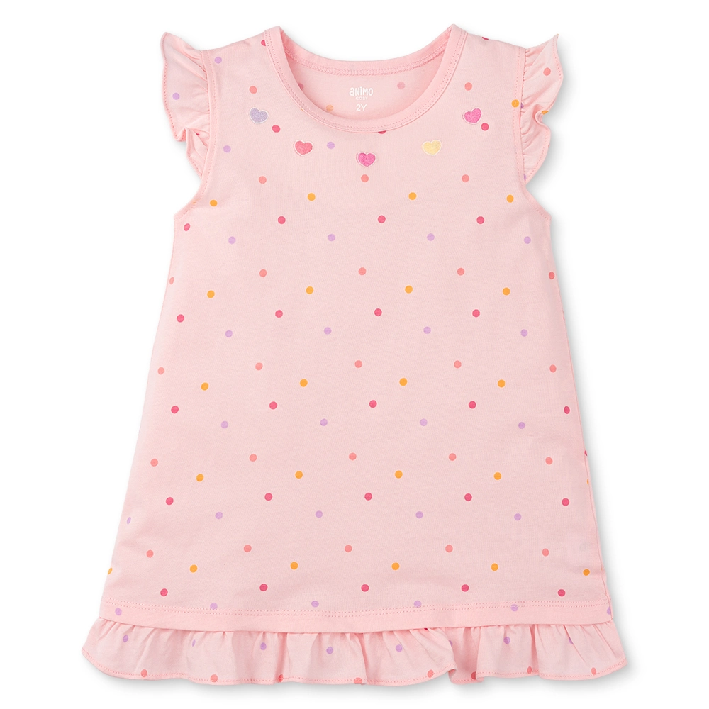Đầm bé gái Animo Easy TX0226023 (1-4Y, Hồng, TT17) là món quà ngọt ngào dành tặng cho các cô công chúa nhỏ yêu thích vẻ đẹp nữ tính. Với gam màu hồng phấn dịu dàng phủ đầy những hạt chấm bi sắc màu, chiếc đầm mang đến vẻ ngoài rạng rỡ, đáng yêu và sự thoải mái tuyệt đối cho bé trong mọi hoạt động.