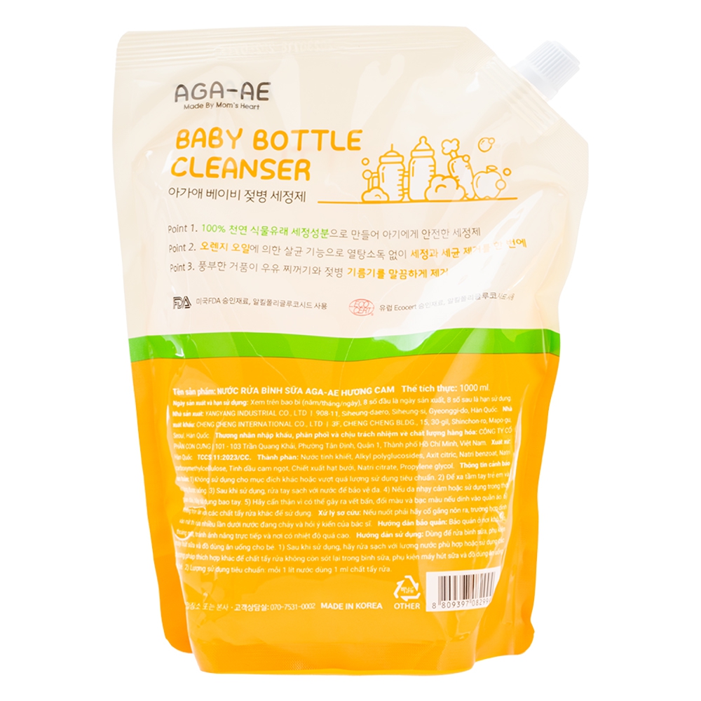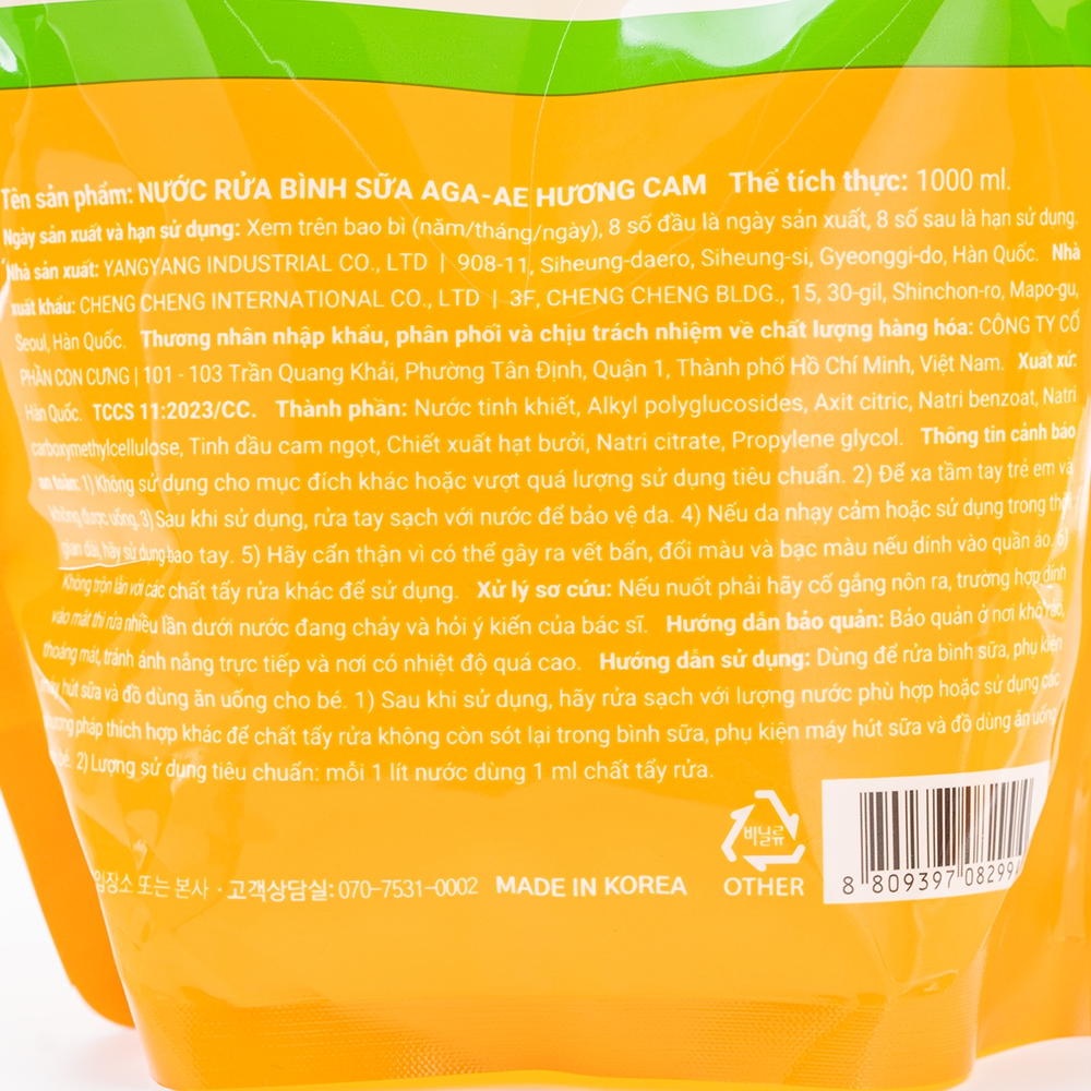 | Tên sản phẩm | Nước rửa bình sữa AGA-AE hương cam - Túi 1L |