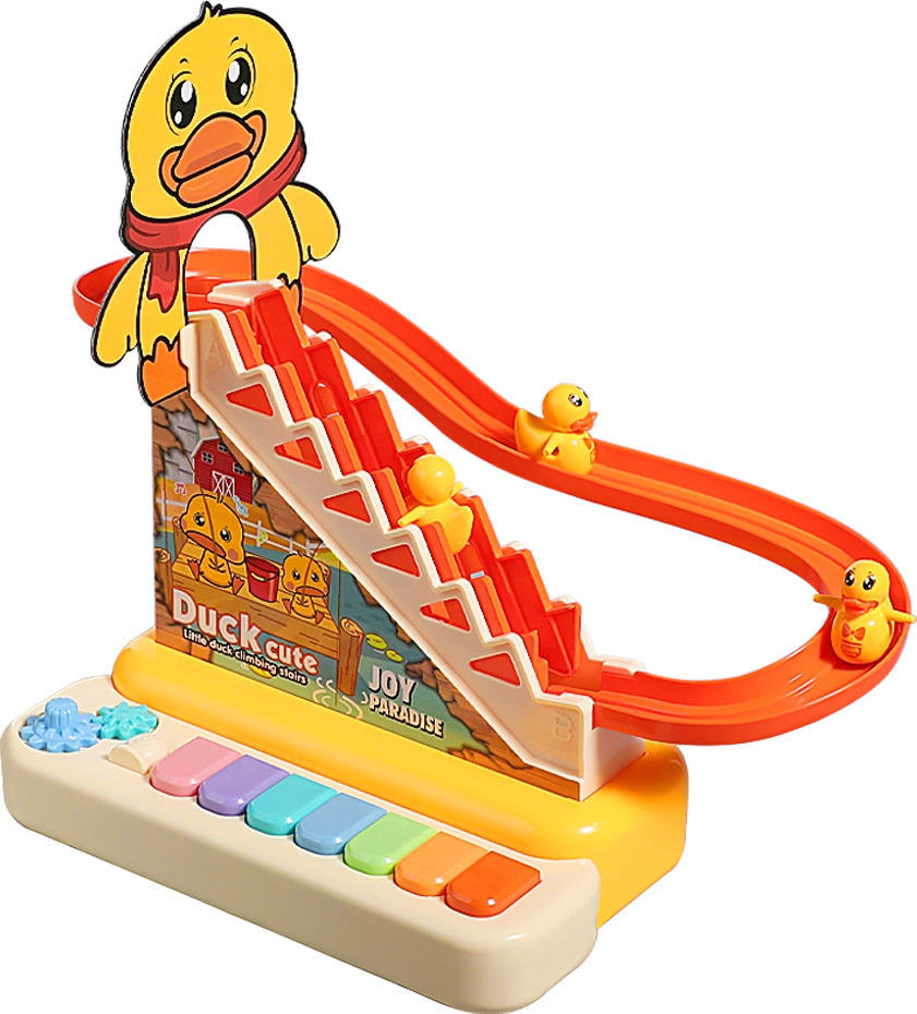 Bộ đàn piano kèm cầu trượt vịt leo thang có nhạc đèn LH16881338 C509 mô phỏng sinh động với sự gắn kết giữa đàn piano và khu vui chơi mini cho chú vịt, kết hợp âm nhạc và đèn vui nhộn, giúp bé vừa khám phá giai điệu vừa rèn luyện khả năng quan sát, phối hợp tay – mắt trong mỗi giờ chơi đầy hứng khởi.