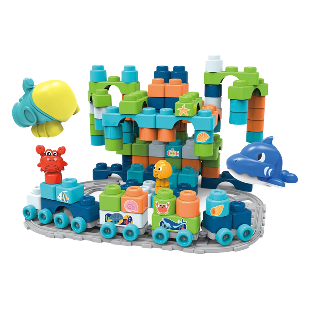 . Bộ đồ chơi gồm nhiều hình khối với màu sắc bắt mắt theo chủ đề sinh vật biển rất sinh động;