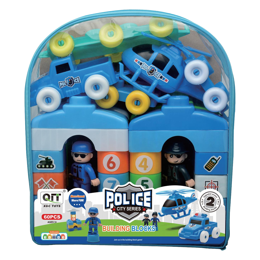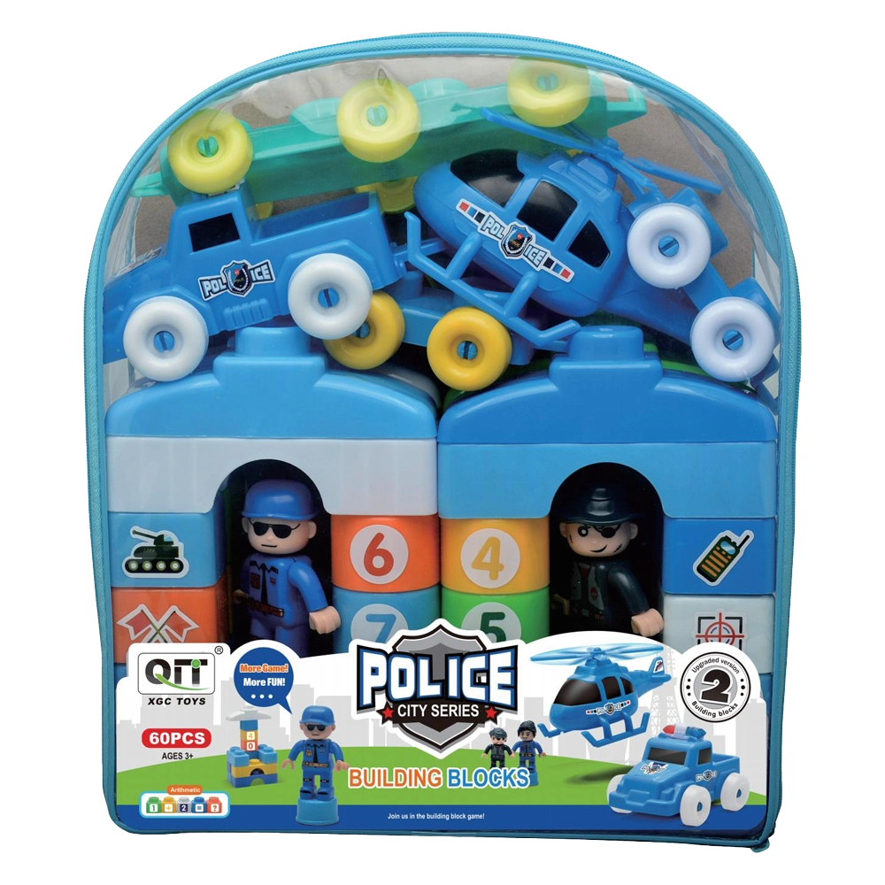 Balo xếp hình khối kèm xe, máy bay và mô hình cảnh sát 60pcs YN579835 C407 (Xanh dương)