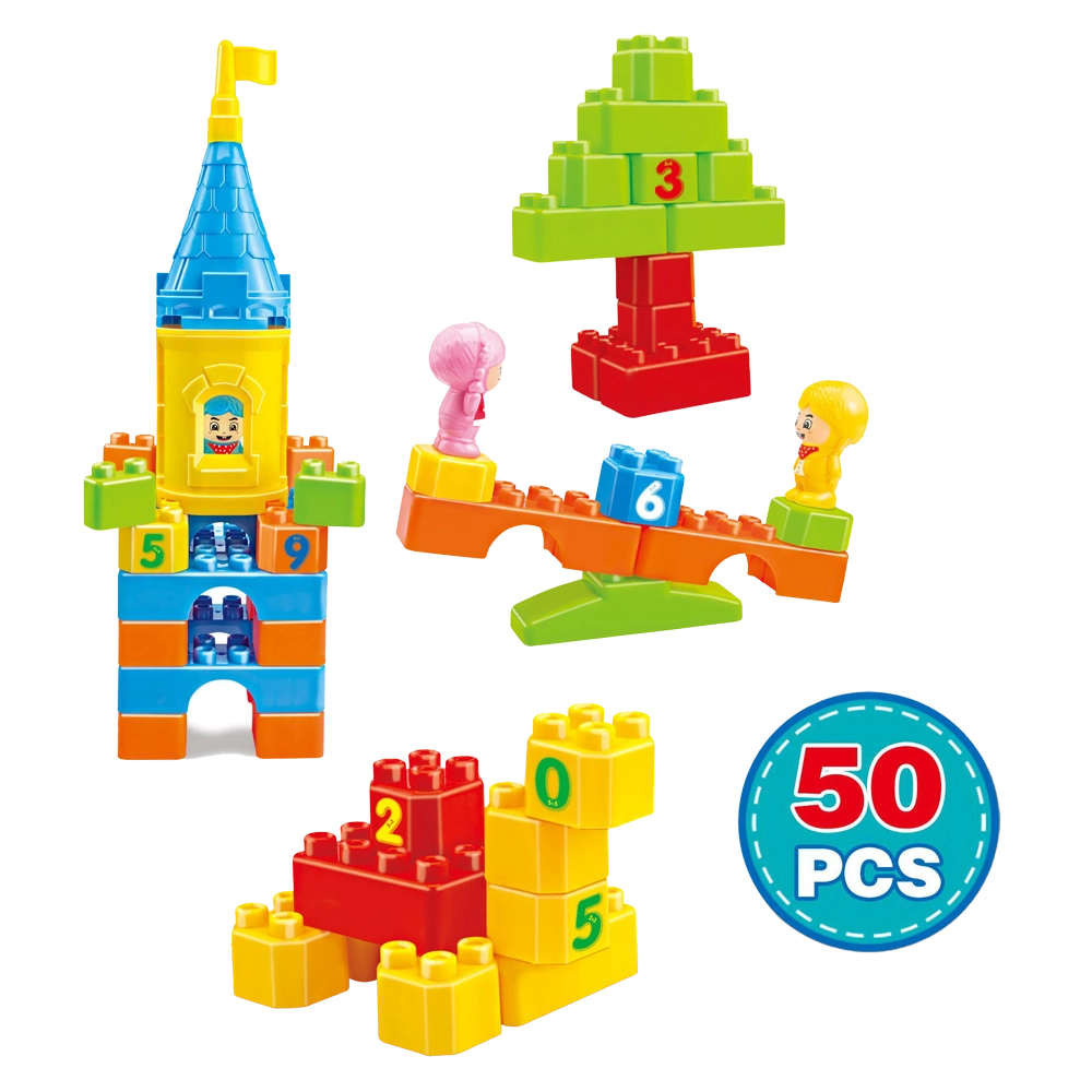 . Bộ đồ chơi bao gồm 50 hình khối với nhiều dạng và màu sắc bắt mắt;