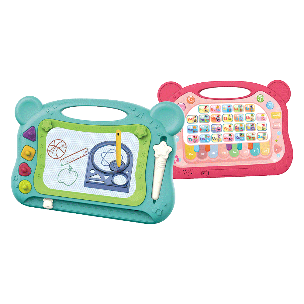 . Sản phẩm có 2 mặt: 1 mặt là bảng vẽ, 1 mặt là bảng học chữ với rất nhiều phím chức năng;
