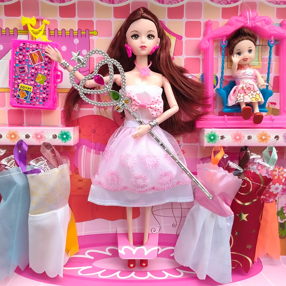 . Bộ đồ chơi bao gồm 2 búp bê lớn và nhỏ cho bé thay đổi chơi theo ý thích;