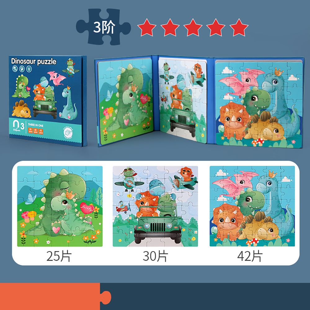 Bộ 3 tranh ghép hình nam châm học về thế giới khủng long 3in1 25,30,42pcs RFD555350 C401