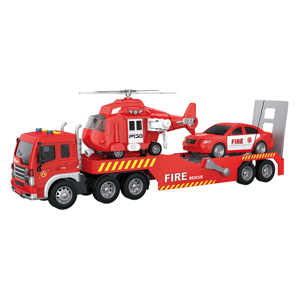 Bộ 3 xe cứu hỏa vận chuyển máy bay và xe ô tô có âm thanh và đèn RFD579870 (Đỏ)