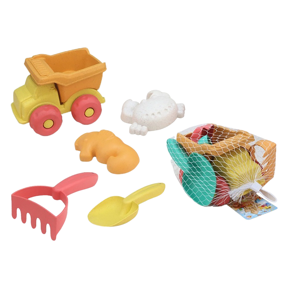 . Bộ đồ chơi đi biển bao gồm: xẻng xúc, cào cát, 2 khuôn tạo hình và xe chở cát;