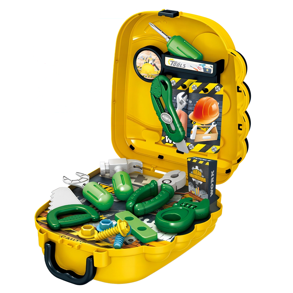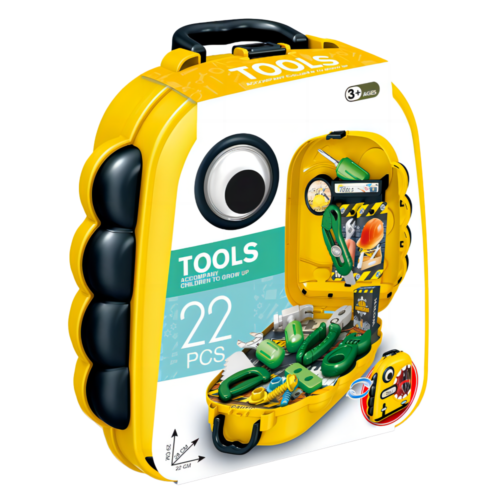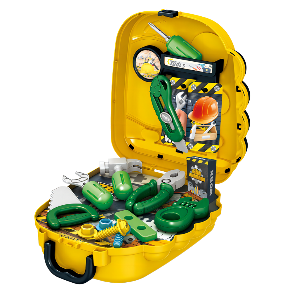 . Bộ đồ chơi bao gồm 21 chi tiết lớn nhỏ như: cưa, tua vít, búa, kiềm, ốc vít,...;