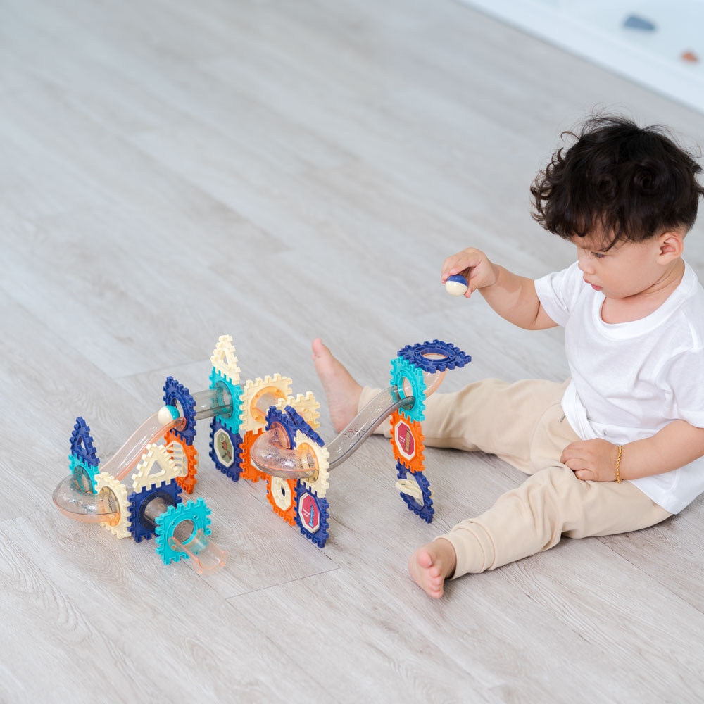 . Bộ lắp ráp giúp bé làm quen với toán học, khoa học khi tìm hiểu về đường lăn của bóng.