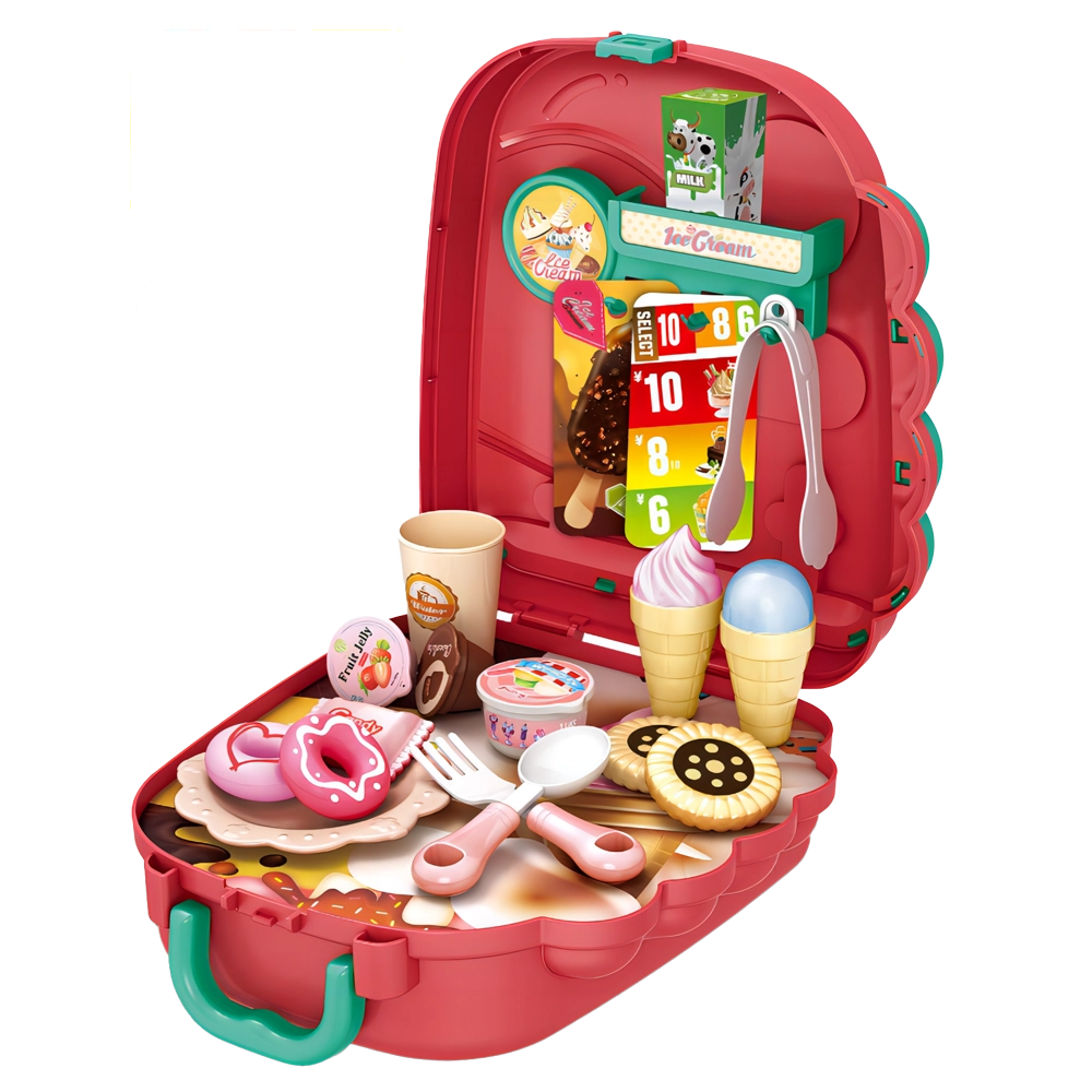 . Sản phẩm bao gồm: bánh, đĩa, kem, muỗng, nĩa,... cho bé thoả sức tưởng tượng và sắp xếp để tạo thành câu chuyện nhập vai;