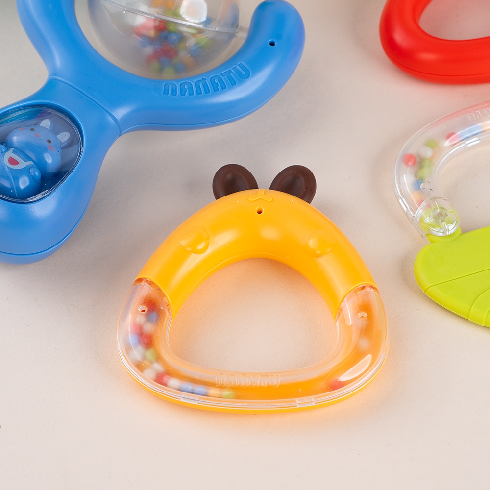 . Bên trong xúc xắc có các hạt nhỏ, khi lắc sẽ tạo ra âm thanh vui tai giúp bé phát triển thính giác;