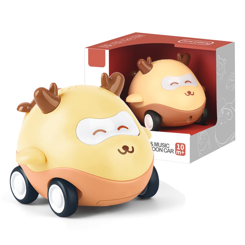 Bật công tắc và xe sẽ phát nhạc (5 bài hát) và sáng đèn. Hãy chỉ bé lấy trớn cho xe và thả cho xe chạy, bé sẽ vui thích khi quan sát và tự chơi. Bánh xe nhẹ, chạy êm giúp xe chạy với chỉ lực trớn nhẹ. Sản phẩm cũng giúp bé nhận biết thêm về màu sắc, hình dáng, động vật.