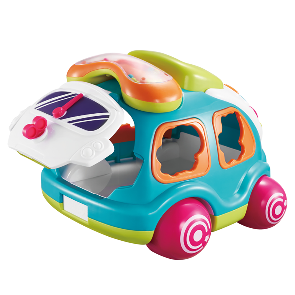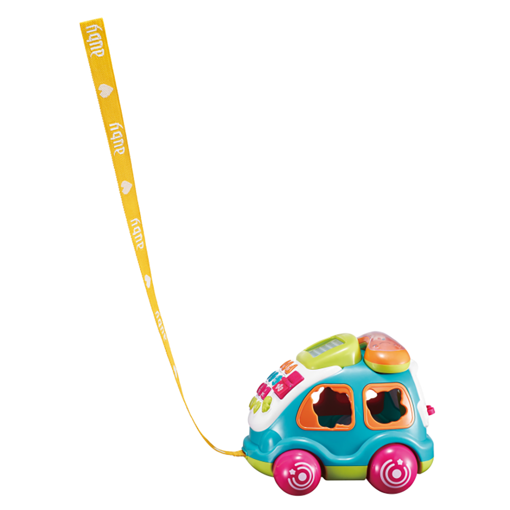 Bé nhấn các nút trên xe để thả hình khối, học toán số, tiếng Anh,...