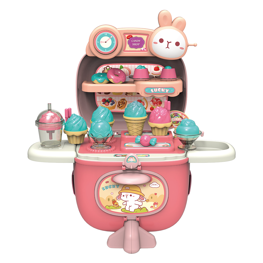 . Bộ đồ chơi bao gồm các chi tiết được mô phỏng theo thực tế như: que kem, kẹo, ly kem, bánh,...;