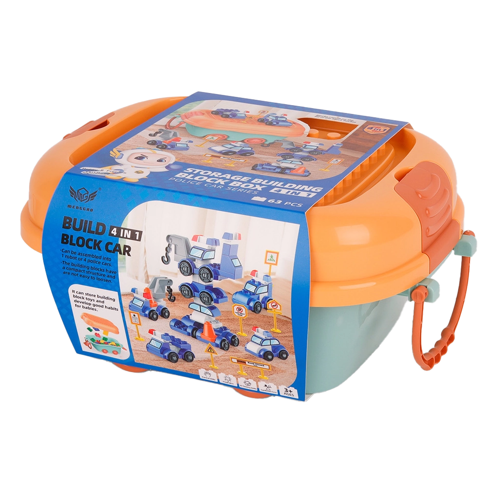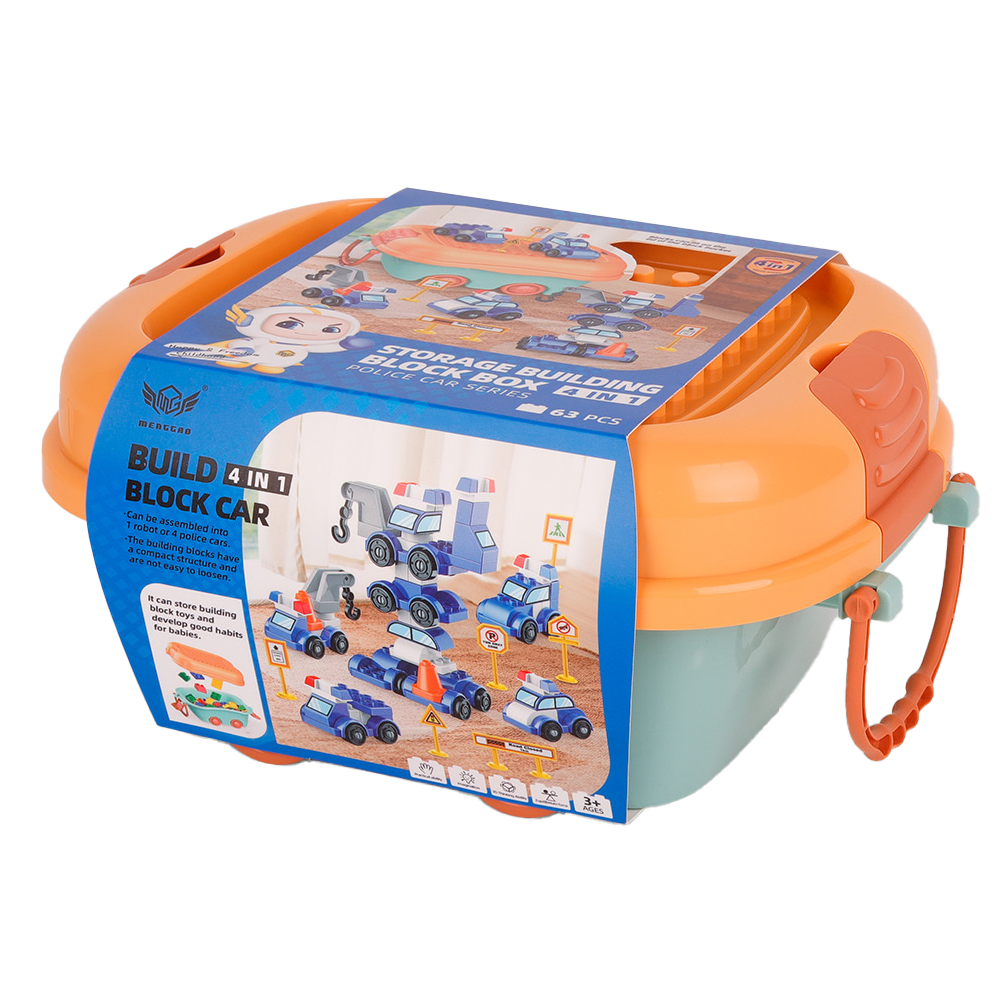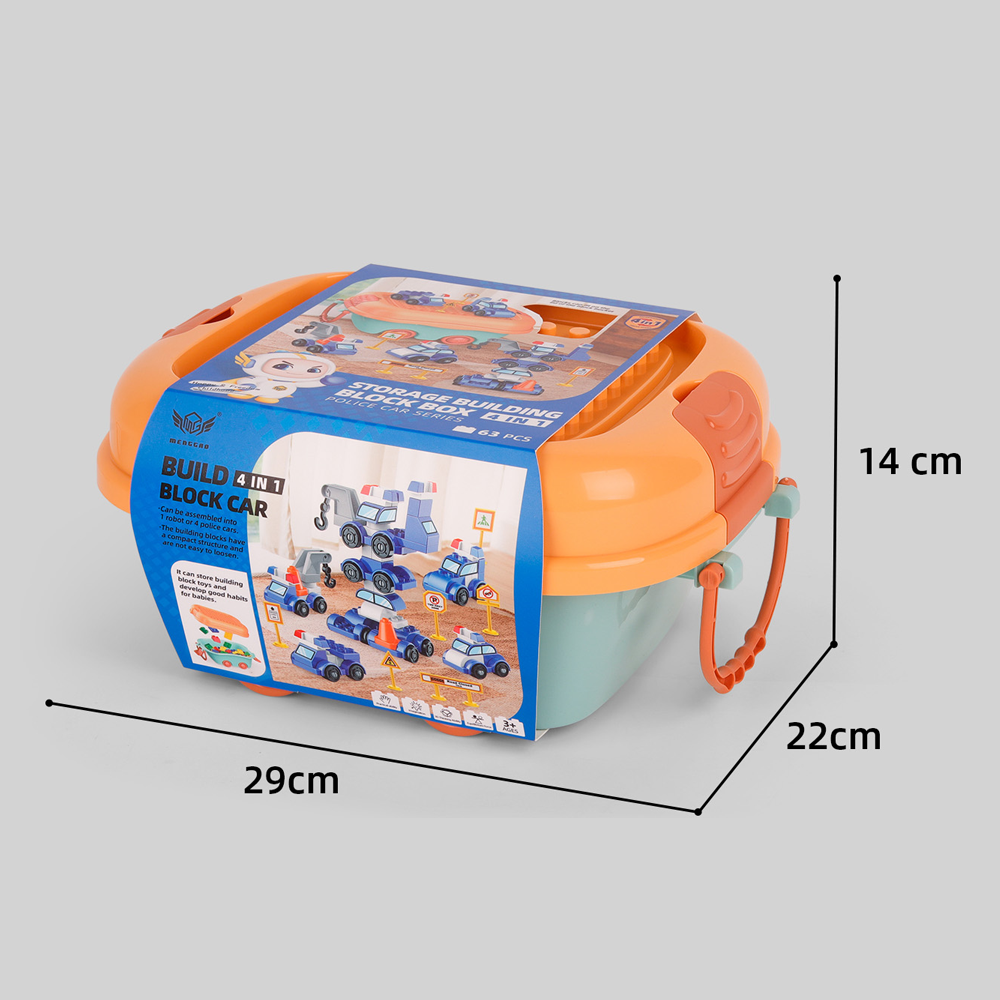 . Hộp đồ chơi bao gồm nhiều được mô phỏng chi tiết theo xe cảnh sát, biển báo,...;