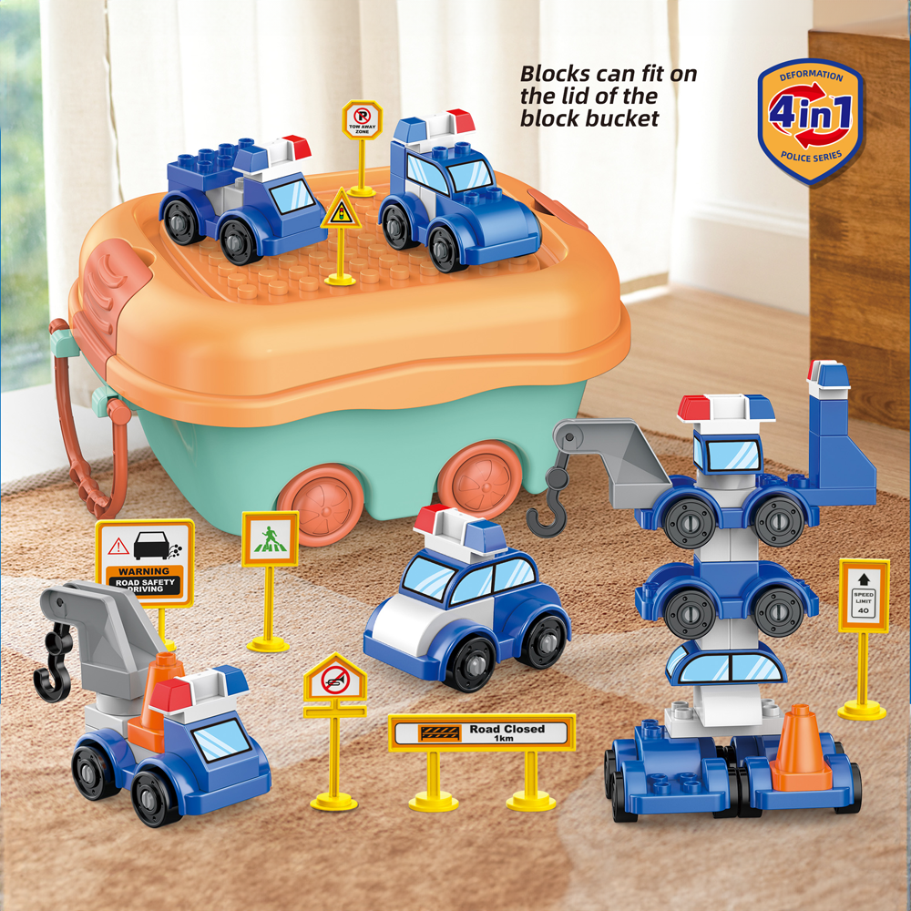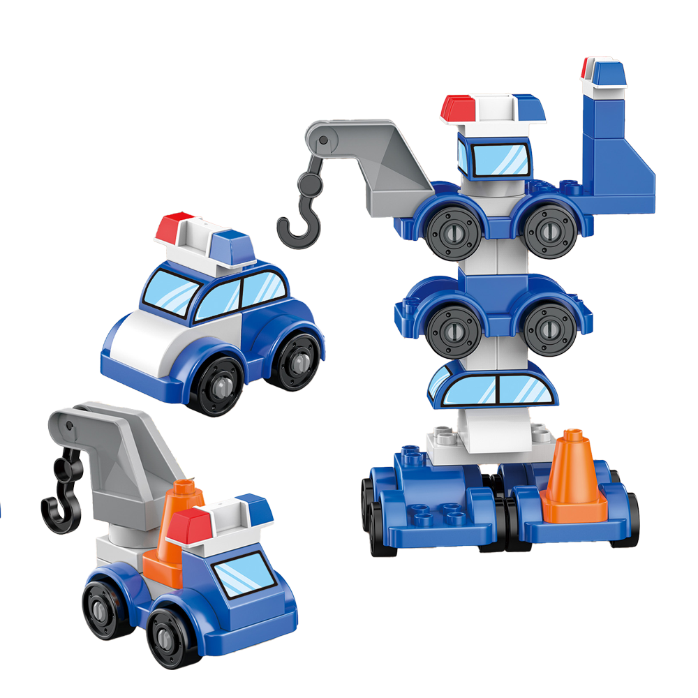 . 4 chiếc xe cảnh sát có thể lắp ráp lại thành 1 robot cho bé thoả sức thay đổi và chơi;
