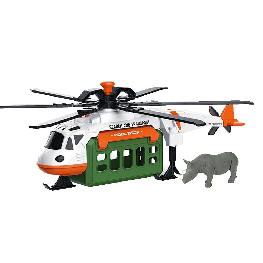 . Thiết kế mô phỏng máy bay trực thăng cứu hộ động vật vô cùng chi tiết, gồm: lồng cứu hộ, cánh máy bay, tê giác,...;