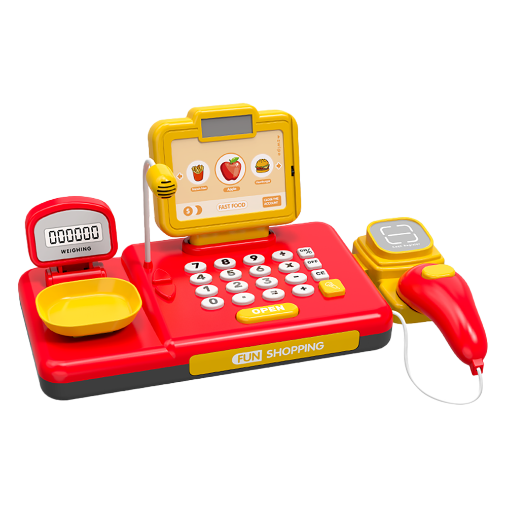 . Đồ chơi mô phỏng chi tiết các máy tính tiền hiện nay như màn hình, máy quét, bàn phím số,...;
