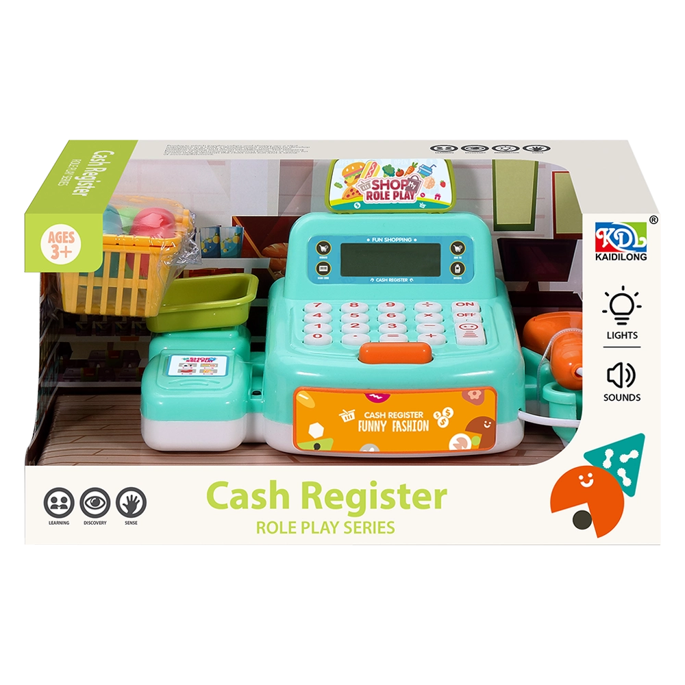 . Máy tính tiền có thể phát ra âm thanh và đèn vui nhộn, giúp bé thêm thích thú khi chơi;