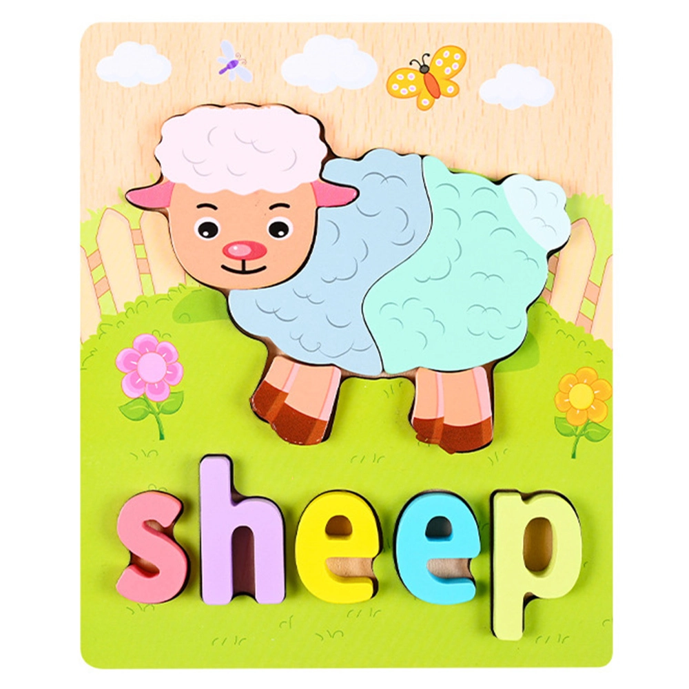 Miếng ghép gỗ hình con vật dễ thương kèm tên tiếng anh RFD638980 C412