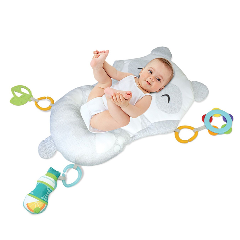 Bé nằm chơi trên thảm đệm với chất liệu cao cấp, các phụ kiện dễ thương.