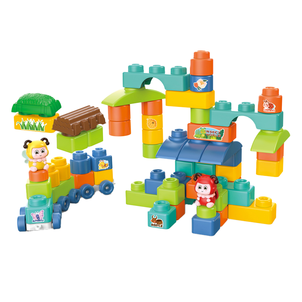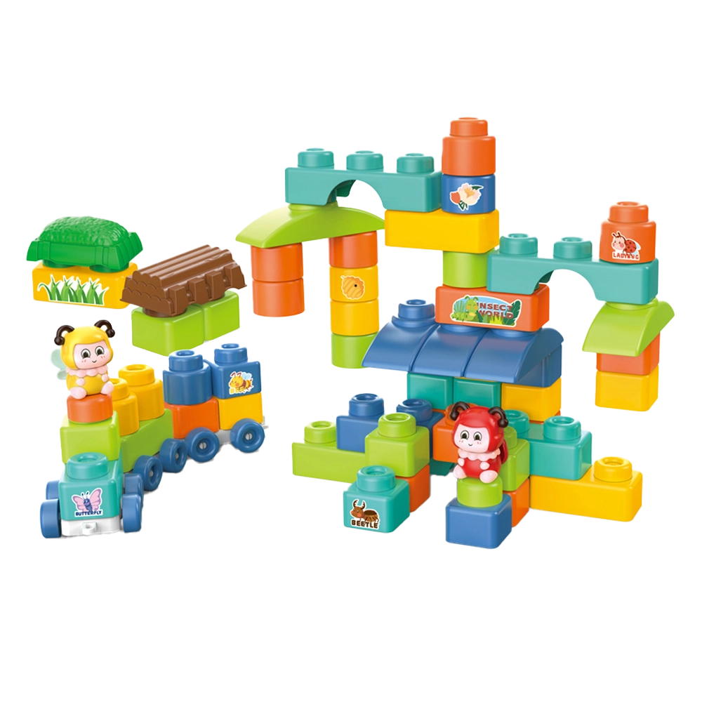. Bộ xếp hình bao gồm nhiều hình khối với các hình dạng và màu sắc bắt mắt;