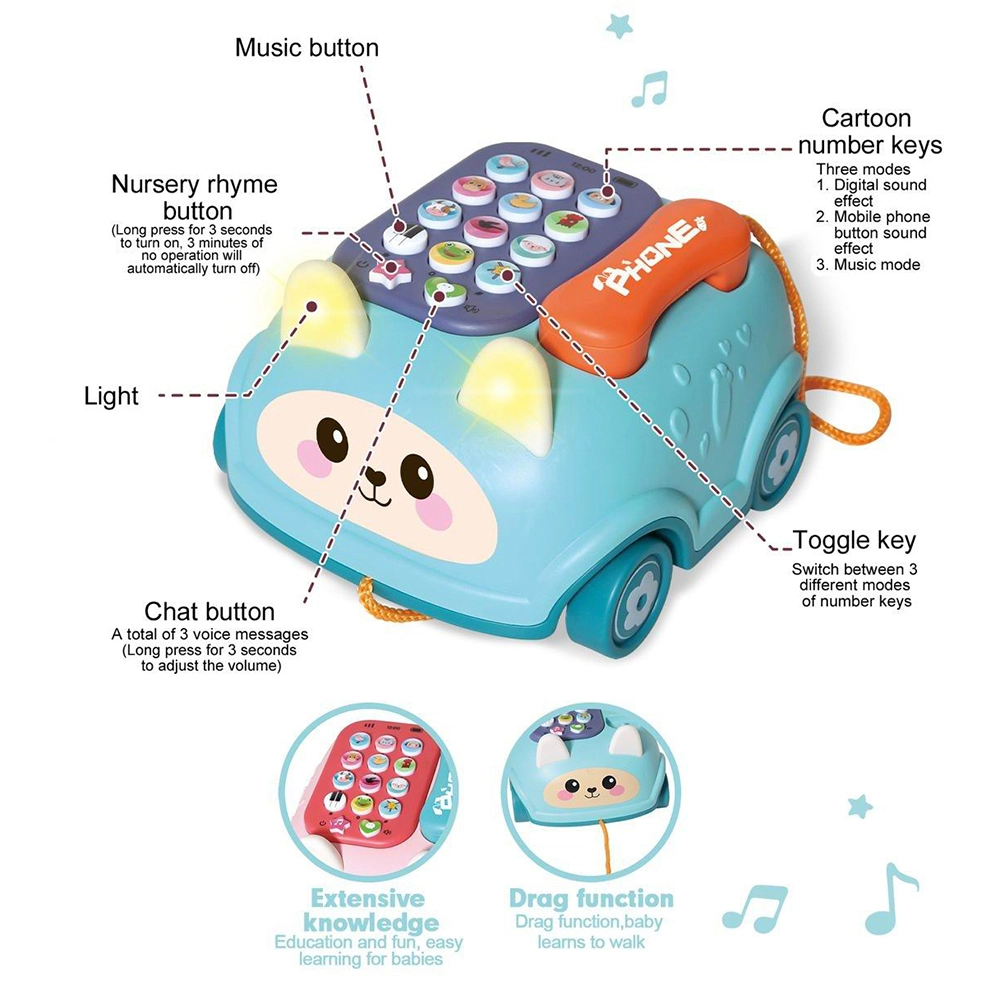 Xe điện thoại bàn hình thỏ phát nhạc dễ thương HW23177985 C412 (Xanh dương)
