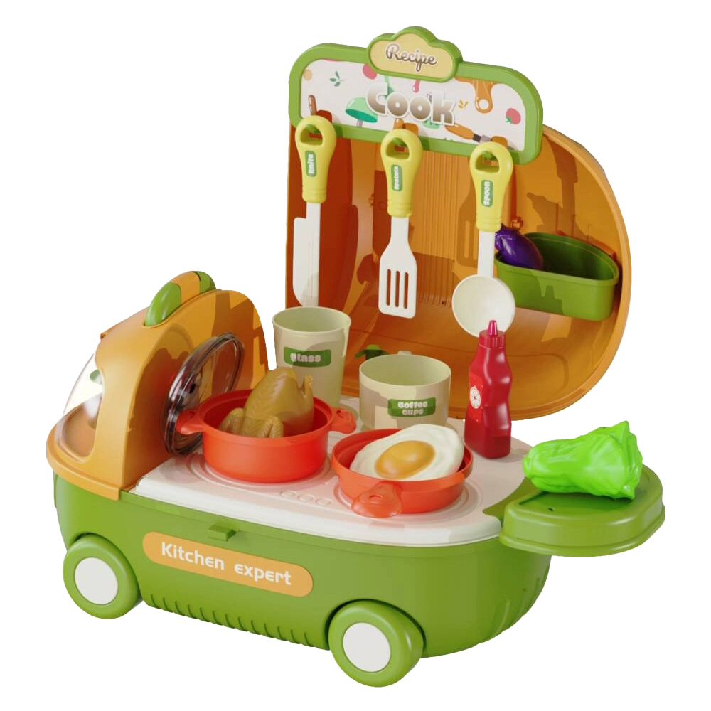 . Thiết kế 2-trong-1 tiện lợi: vừa là xe ô tô đồ chơi vừa là bộ mô phỏng nhà bếp mini.