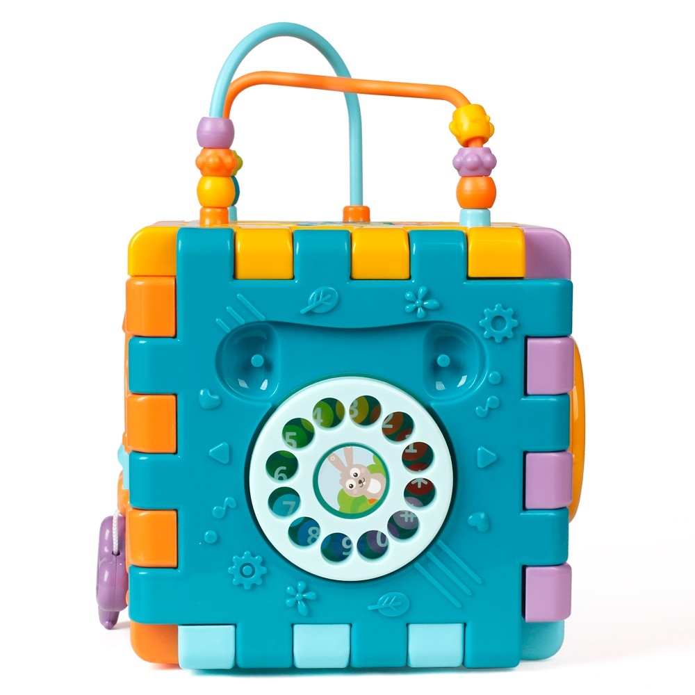 + Mặt thứ 3 là hình chiếc điện thoại quay số, bên trong là các chữ số kích thích bé nhận biết các chữ số bên trong, bé chủ động quay số điện thoại và gọi điện.