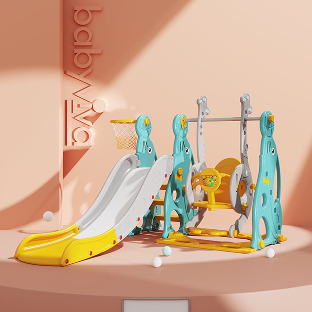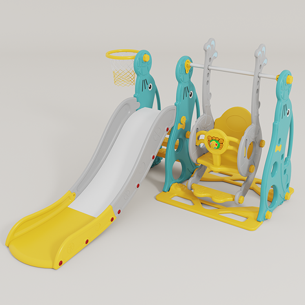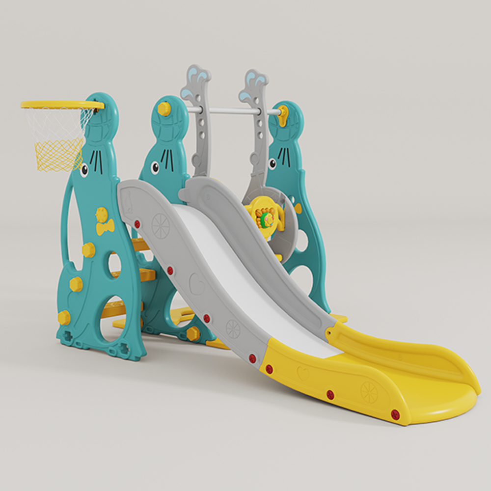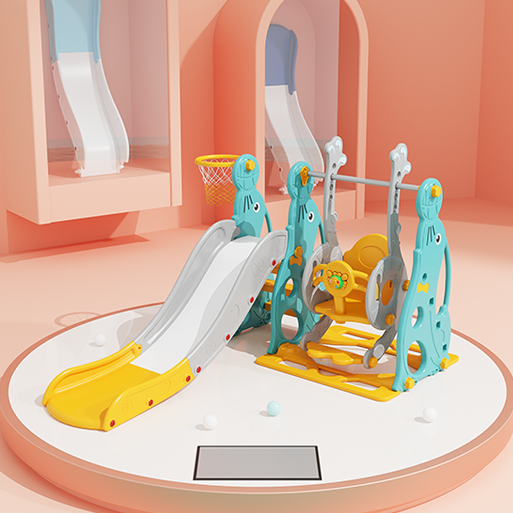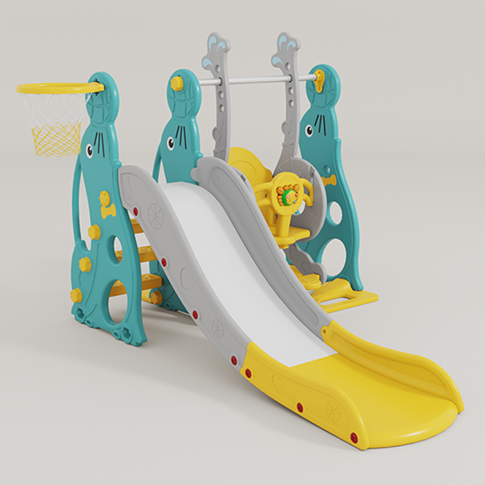 . Vừa có cầu tuột kèm bóng rổ vừa có xích đu cho bé thỏa thích vui chơi;