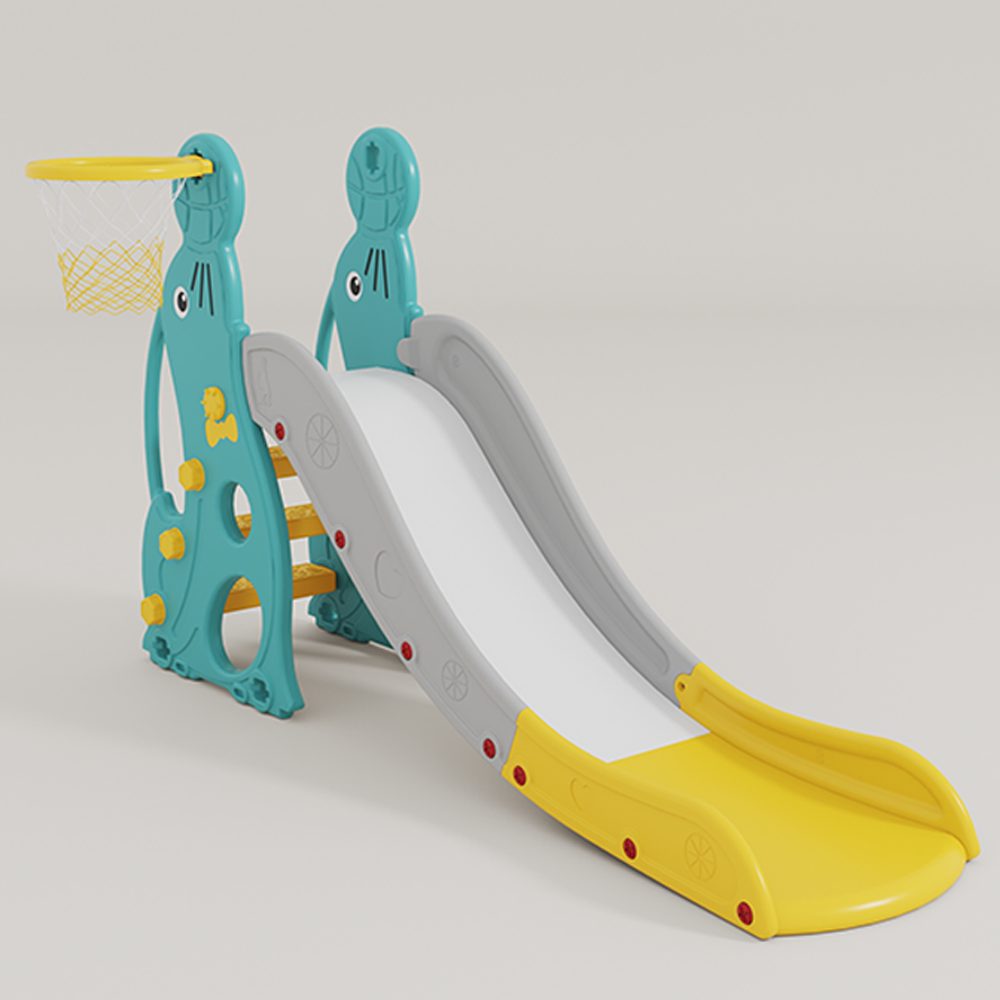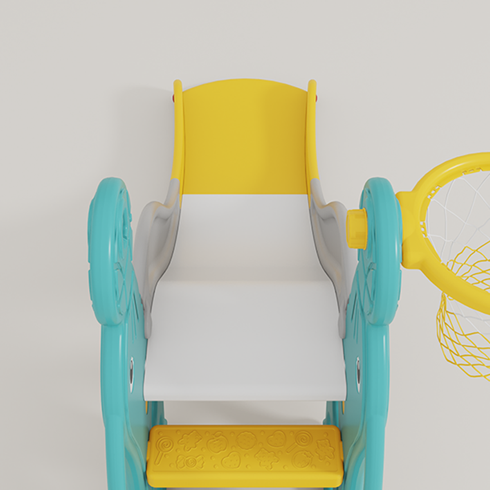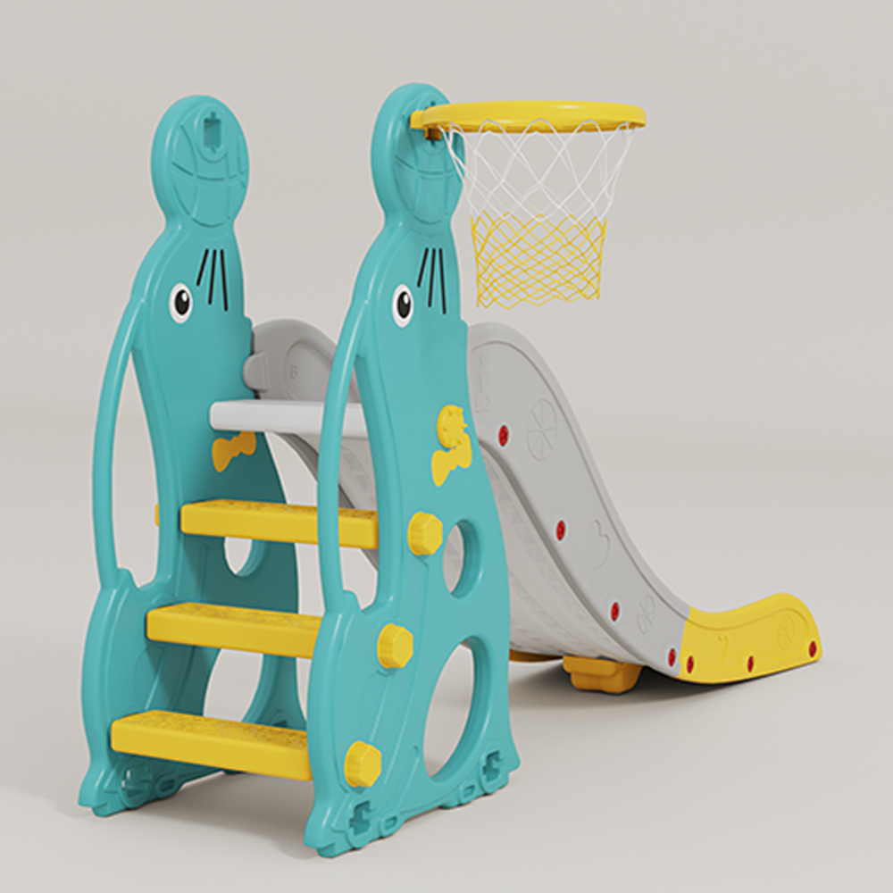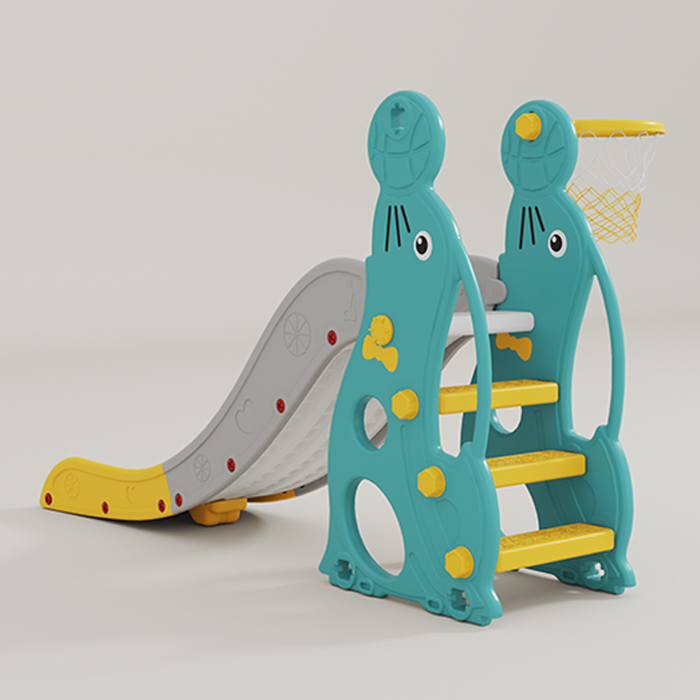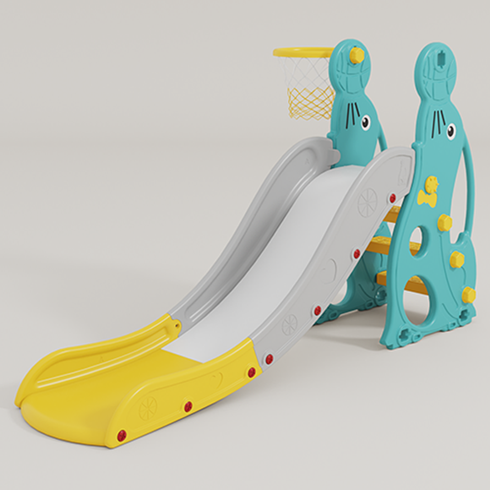 . Vừa có cầu tuột kèm bóng rổ vừa có xích đu cho bé thỏa thích vui chơi;