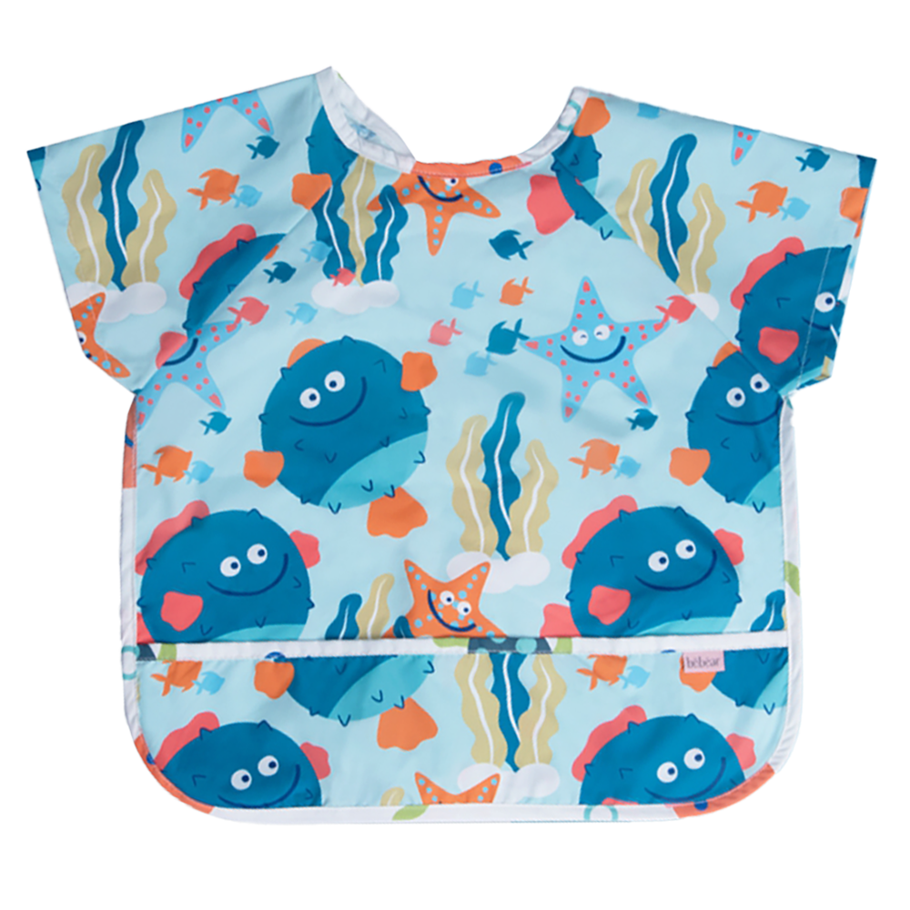 Áo ăn dặm chống thấm tay ngắn Bebear (Xanh, BD8646, size M) phù hợp với bé từ 6 tháng tuổi. Sản phẩm với thiết kế tiện lợi sẽ giúp bé luôn sạch sẽ, không bị lấm bẩn sau mỗi bữa ăn dặm.