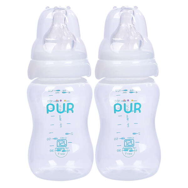Combo 2 Bình sữa Pur cổ thường Comfort Feeder với van chữ V, 120ml