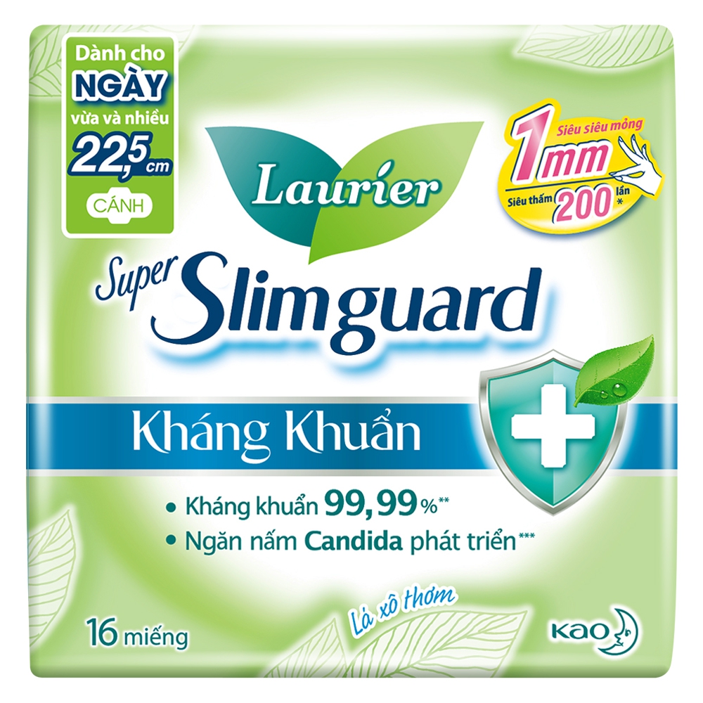 Tên sản phẩm: Băng vệ sinh Laurier Super SlimGuard kháng khuẩn 22,5cm 16 miếng