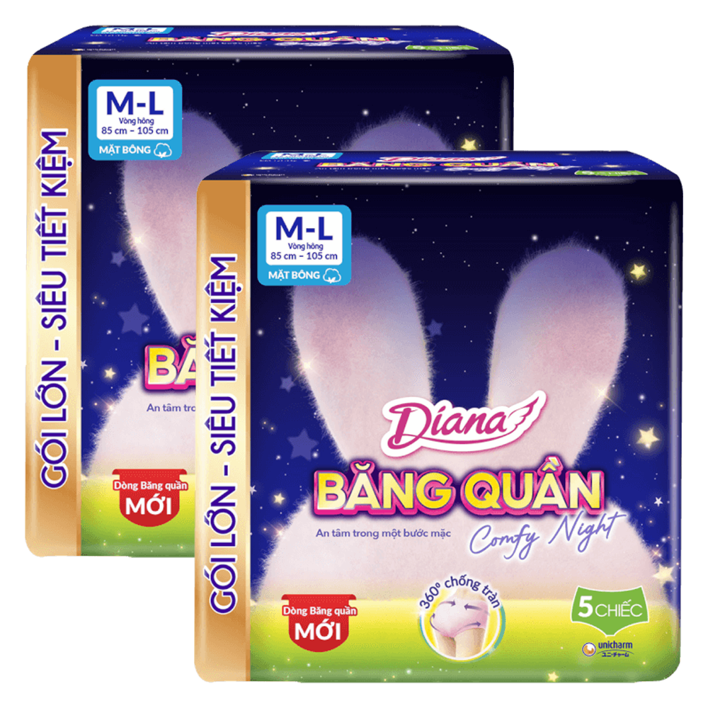 | Tên sản phẩm | Băng vệ sinh quần Diana Comfy Night M/L (5 miếng) |