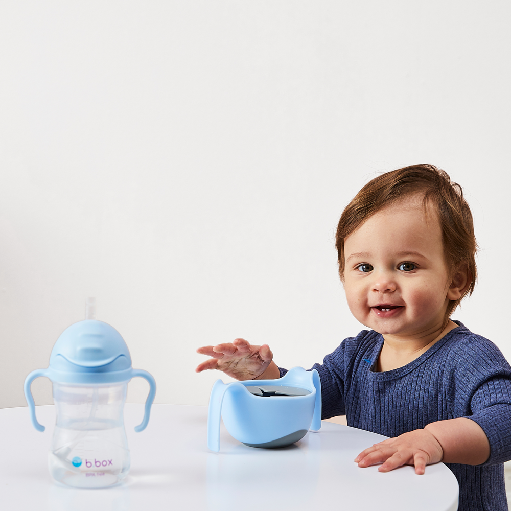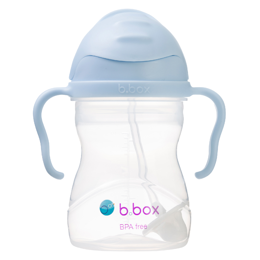 . Bình nước 360 độ b.box có thiết kế bi trọng lực đặc biệt giúp bé hút được nước từ mọi tư thế đi, đứng, nằm, ngồi.