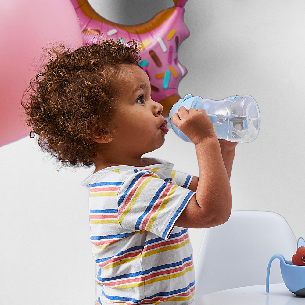 . Ống hút có van chống sặc vừa giúp bé dễ điều chỉnh lượng nước hút lên vừa chống rò rỉ nước ngay cả khi bé dốc ngược bình.