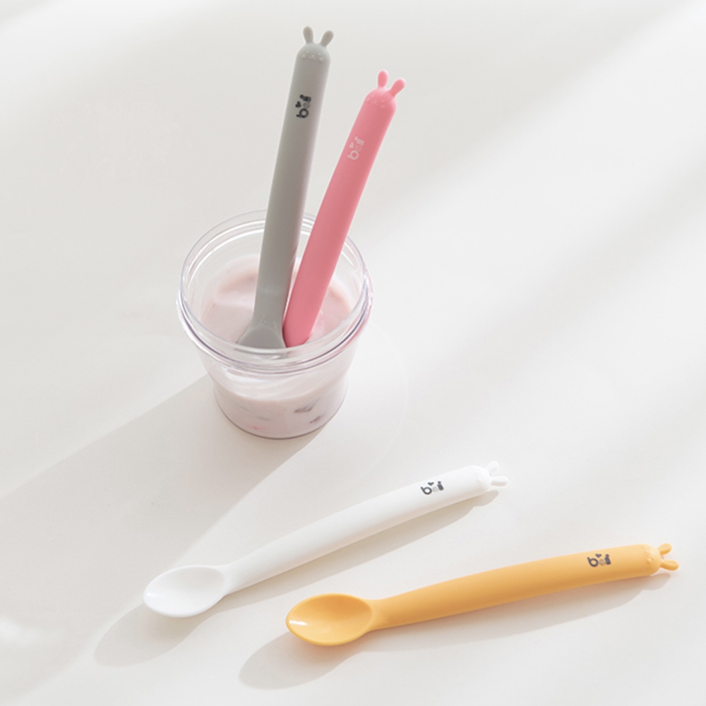 Tên sản phẩm: Bộ 2 muỗng silicone tai thỏ baby&i Hàn Quốc (xanh + vàng)