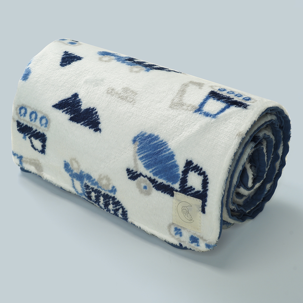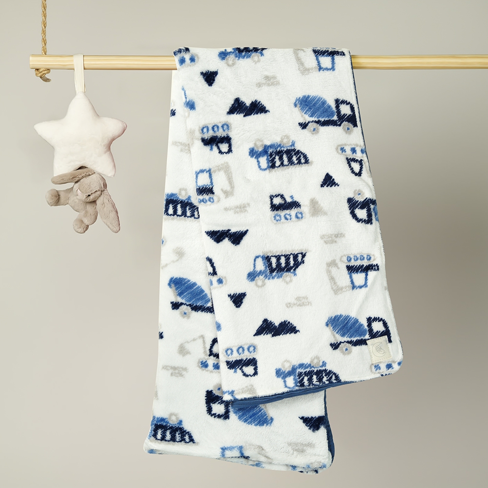 . Cấu tạo 2 lớp là băng lông họa tiết xe ô tô ấm áp và lớp vải xô Muslin mềm;