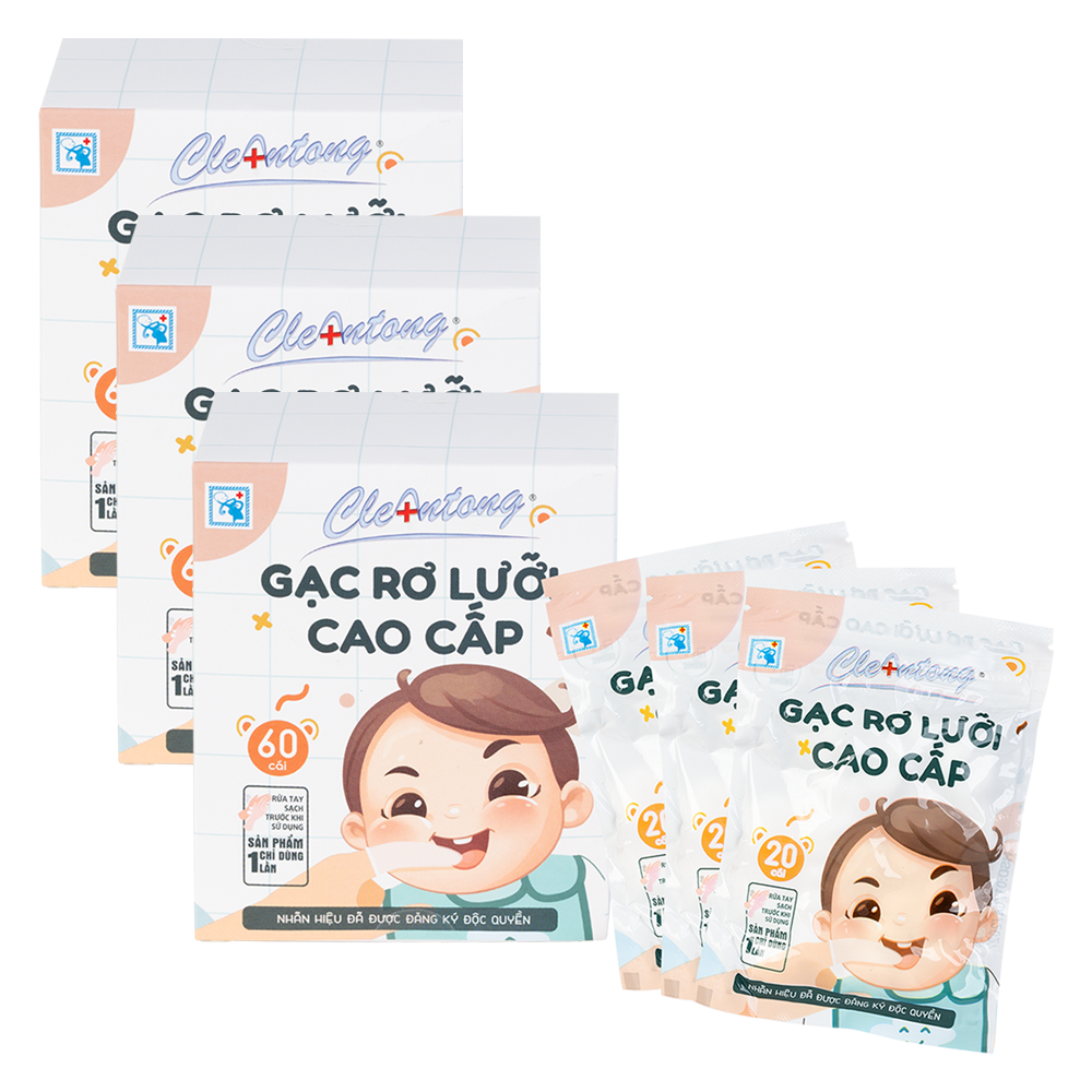 Combo 3 Gạc rơ lưỡi cao cấp CleAntong (PE, 60 cái/hộp)