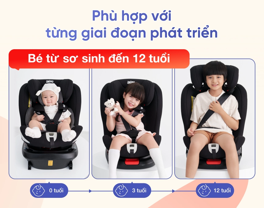 Độ tuổi phù hợp Cân nặng từ 0-36kg (Bé từ 0-12 tuổi)