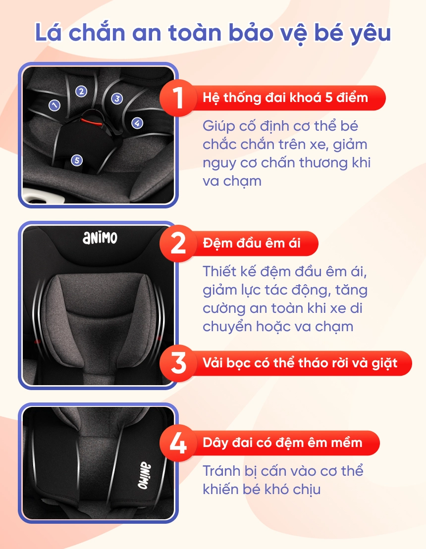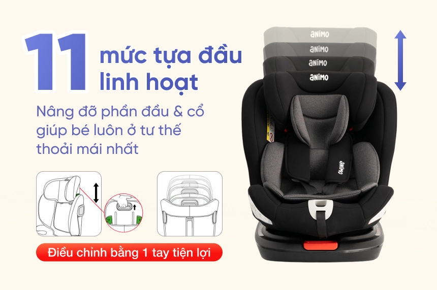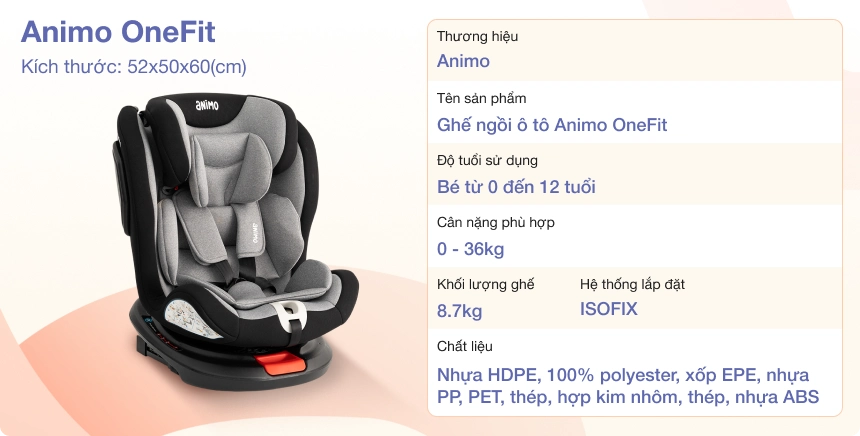 | Tên sản phẩm | Ghế ngồi ô tô Animo OneFit Isofix 360 (0-36kg, R44, CS008, Stone Gray) |