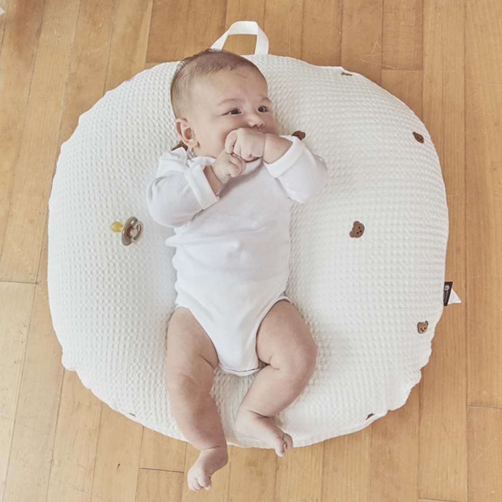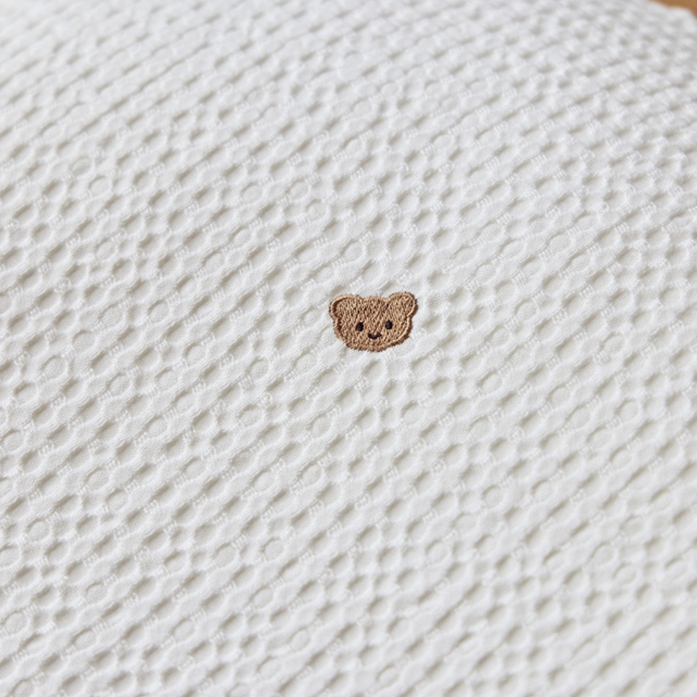 . Vỏ gối được làm từ vải cotton và ứng dụng công nghệ dệt tổ ong giúp không khí lưu thông tốt hơn và bé thấy thoải mái;