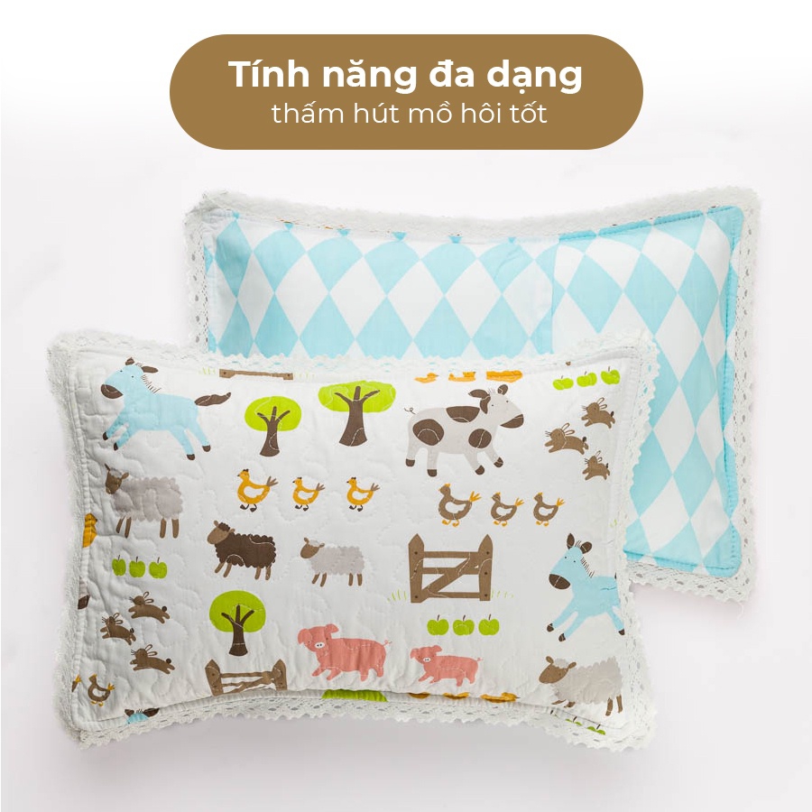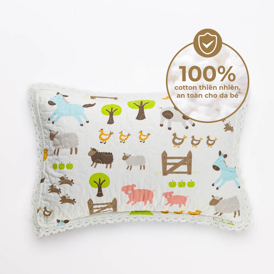 Chất vải 100% Cotton tự nhiên, bền màu, không xù lông, an toàn và thoáng mát, giúp bé có một giấc ngủ khô ráo và dễ chịu.