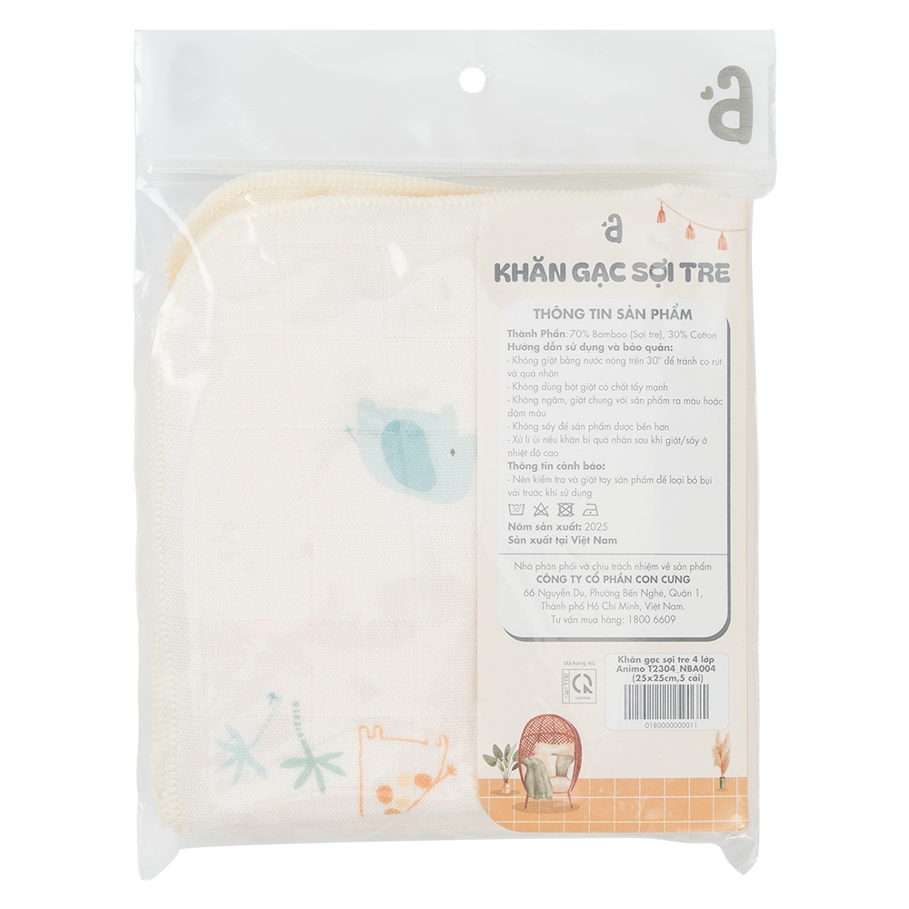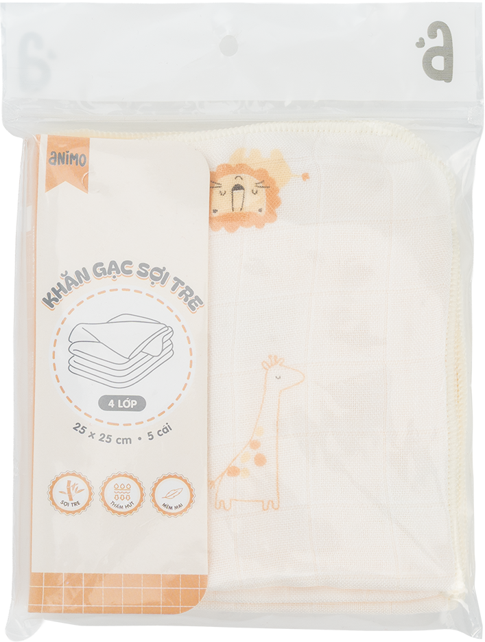 | Tên sản phẩm | Khăn gạc sợi tre 4 lớp Animo T2304_NBA004 |