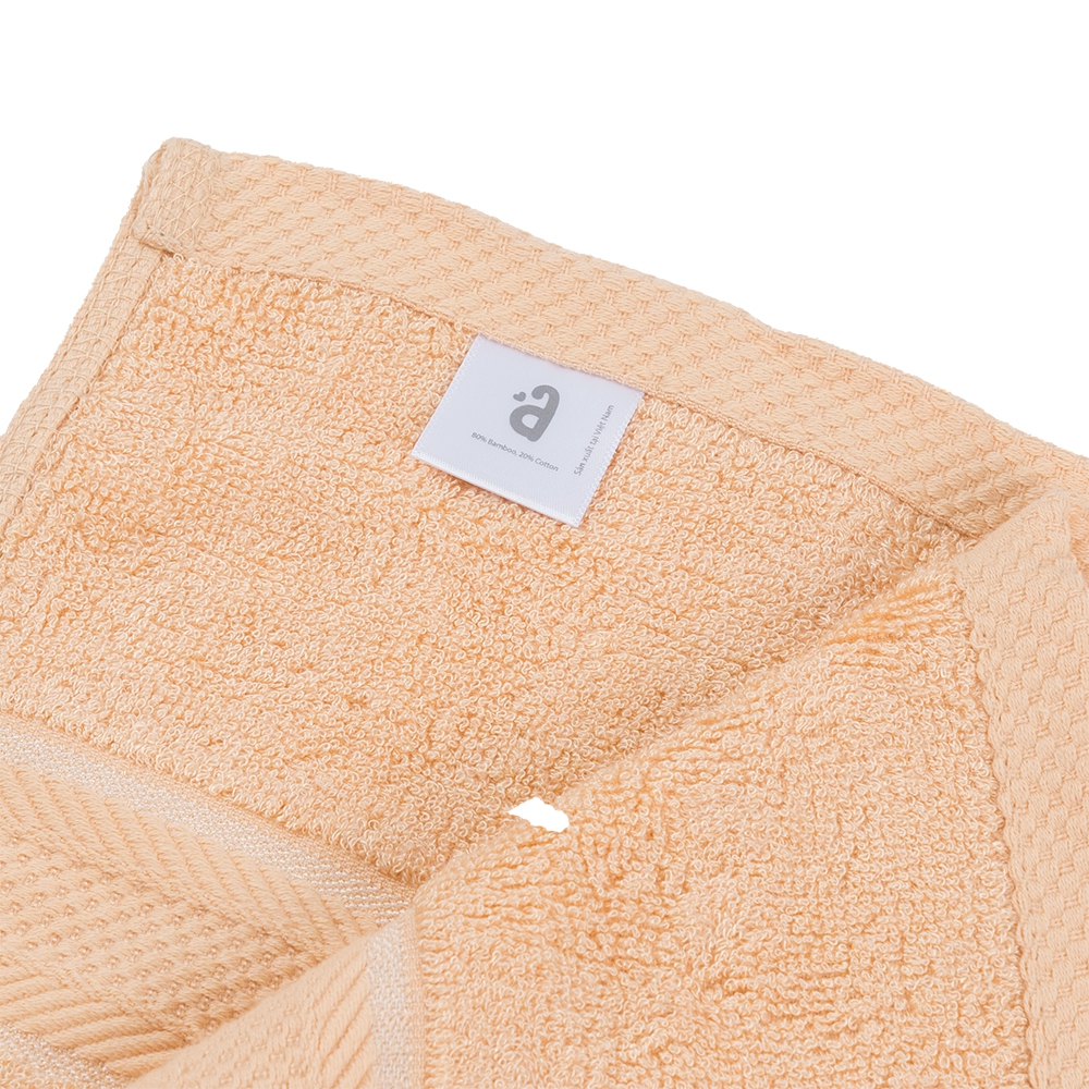 - Chất liệu: Sợi tre (Bamboo) kết hợp cùng với sợi nền Cotton để tăng độ liên kết cho sợi khăn