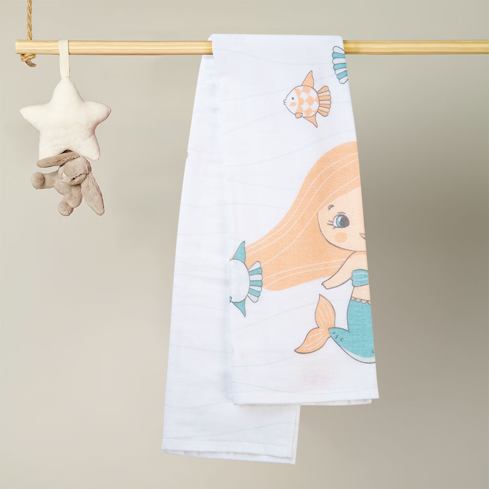 Khăn tắm trẻ em Cotton Nàng tiên cá Animo BM9T (60x120cm,Trắng)